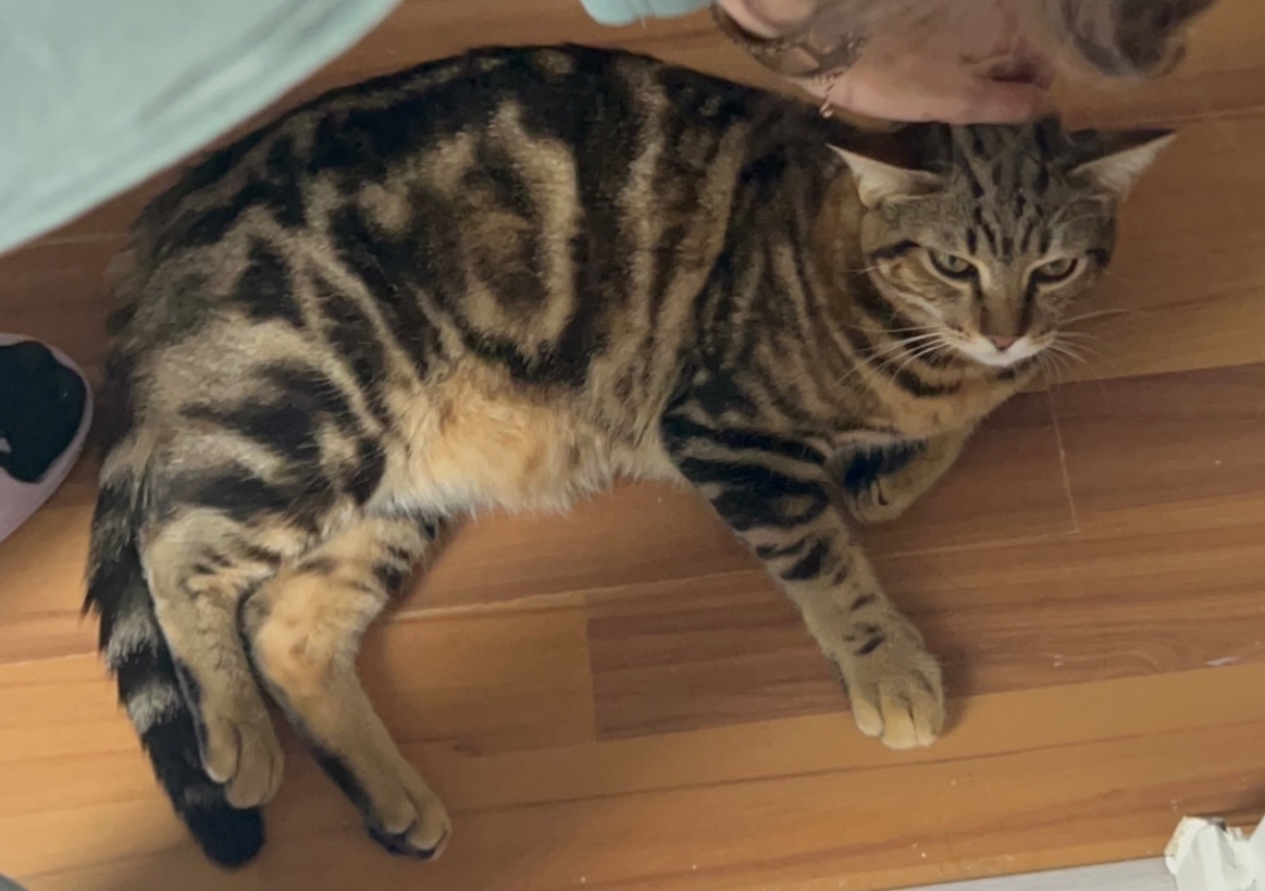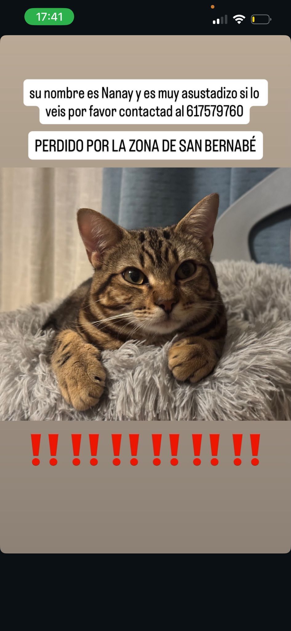 Gato mezcla con pelo atigrado, color marrón oscuro/claro con rayas. Cachorro, no llega al año. Muy asustadizo. No lleva chip. Si lo ves, llama al 617579760. Toda la familia lo estamos buscando y esperando. Compartir por favor.