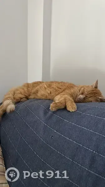 Gato grande de pelo largo de color naranja, 6 kilos aproximadamente lleva un collar de antipulgas de color marrón. Se llama Paco es muy asustadizo y no se deja tocar.