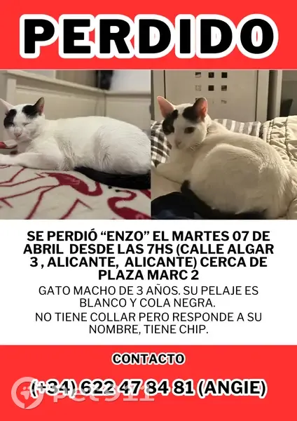Perdido gato masculino, Calle Algar, 6, Alicante - blanco con cola negra