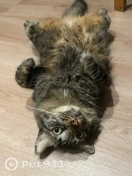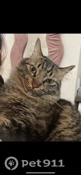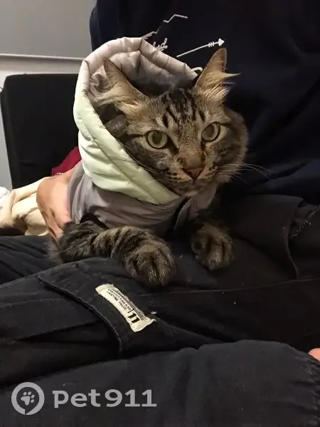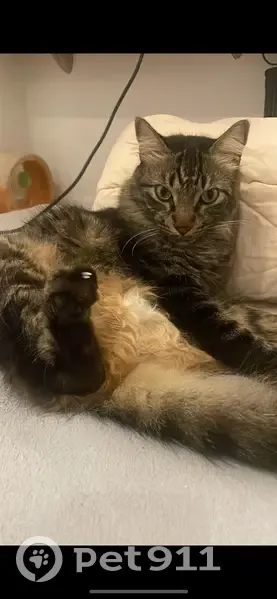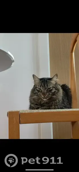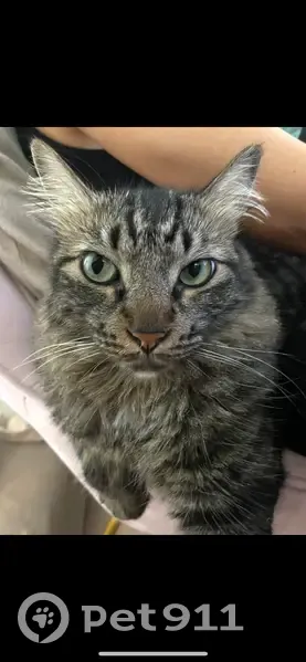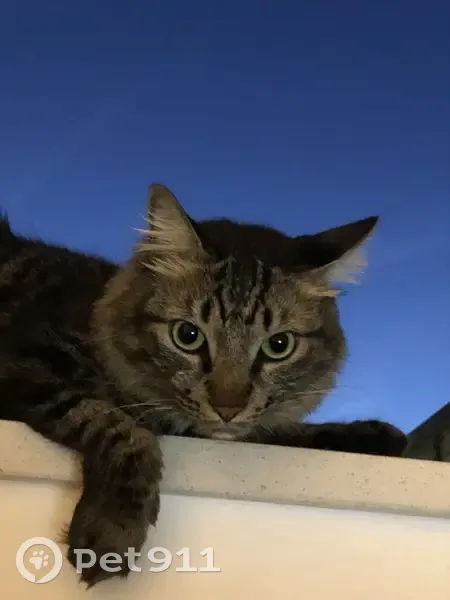 Pelo oscuro y atigrado, ojos verdes. Se asusta con facilidad y tiende a esconderse de los desconocidos. Llevaba un pañuelo rojo triangular en el cuello (al estilo bandido del Viejo Oeste) cuando desapareció. Se escapó de casa saltando el muro, por lo que creo que todavía puede estar en los alrededores.