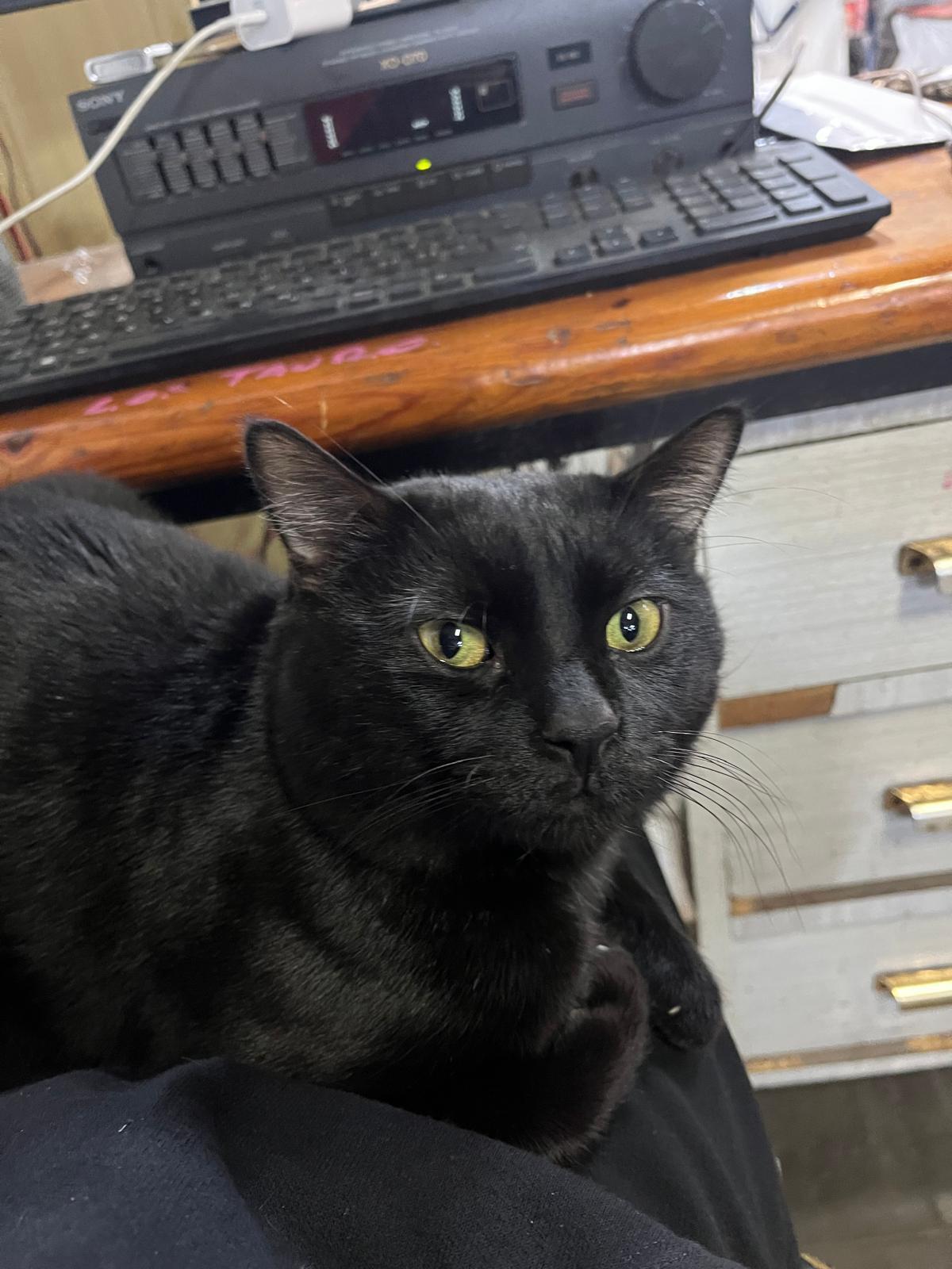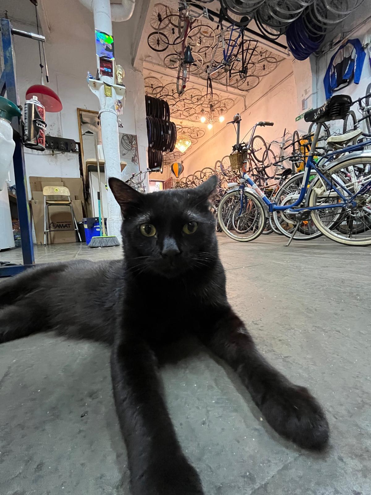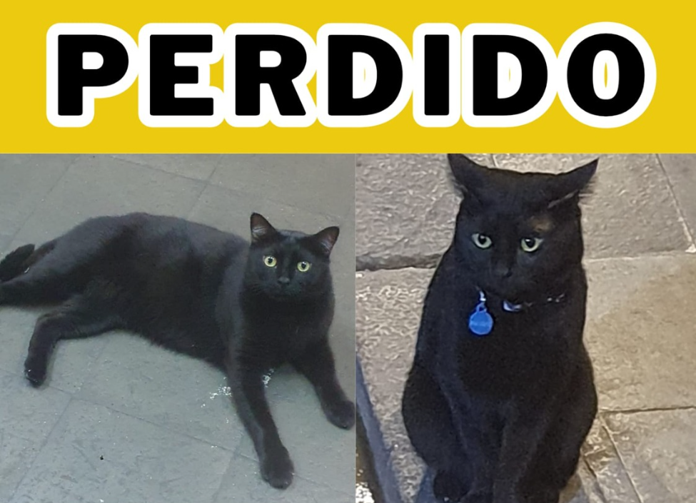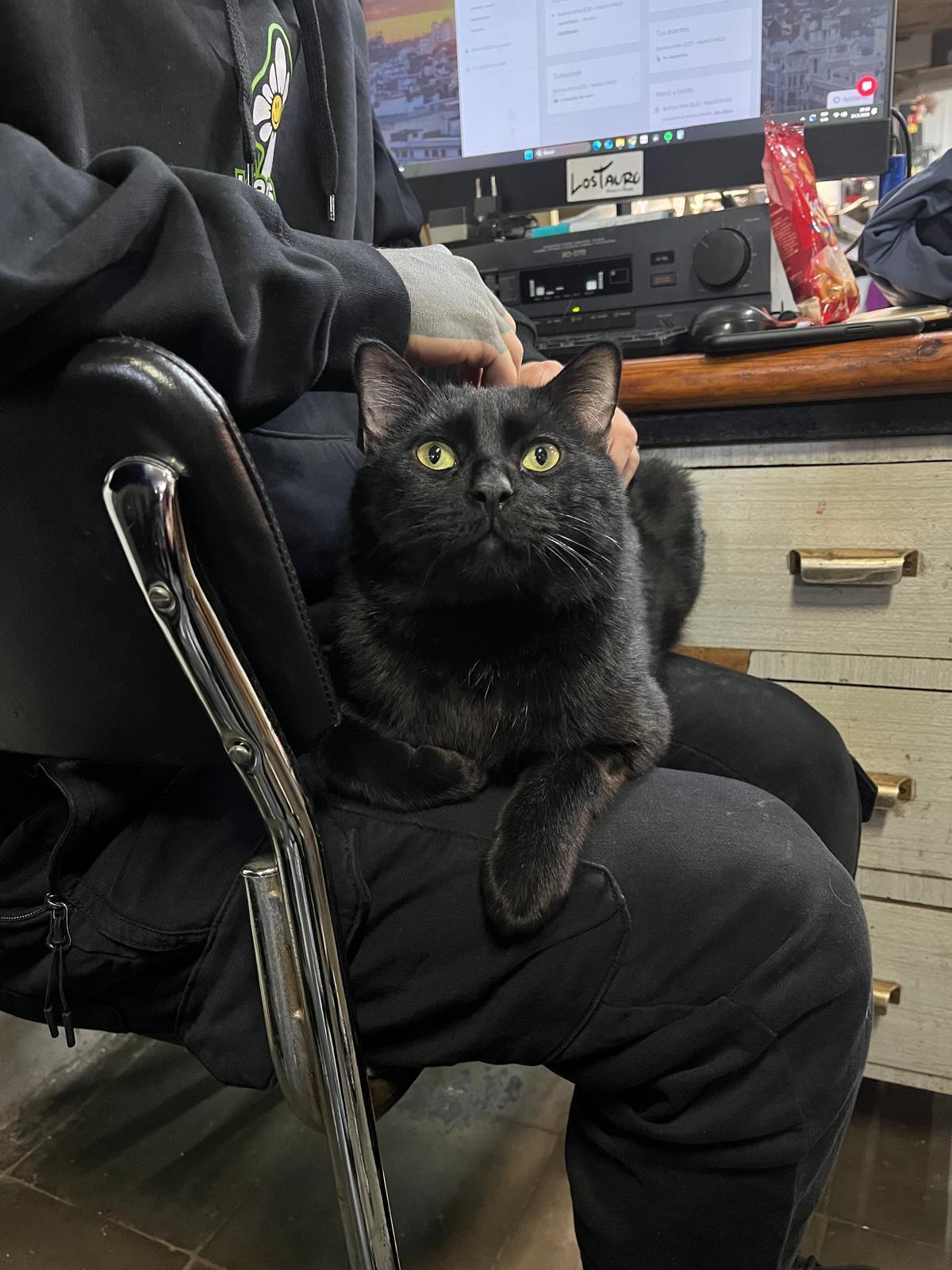 Gato negro de 3 años. Muy cariñoso y sociable. Tiene algunos pelitos negros en el pecho y cara redondita! Desapareció de la puerta del taller de bicicletas alrededor de las 18hs. No tiene collar pero sí tiene chip.