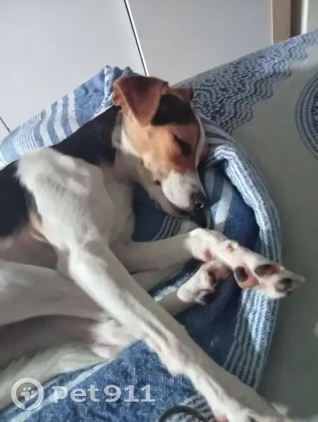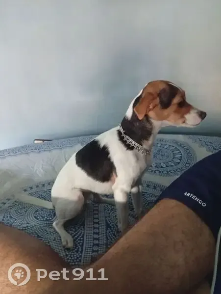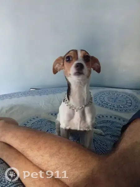 Perra hembra de 7 meses, raza Jack Russell, mayoritariamente blanca, con gran mancha negra en el lateral y en la base de la cola. Orejas negras, cara blanca, marrón y negra. LLEVA 2 COLLARES PUESTOS, uno de color gris (el de la correa) y otro de plata con brillantes rosas, tipo bisutería. No es agresiva, puede que ladre si la intentan coger, es asustadiza. Responde al nombre de NOUR (se pronuncia NUR) o al nombre de LILI (nombre que tenia antes de que la adoptaramos). Ha desaparecido en la zona de LA VERNEDA - LA PAU - SANT MARTÍ, en la calle SANTANDER / PASSATGE FERRADURA.