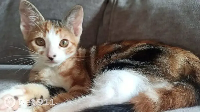 Gata marron con patitas blancas. Tiene 4 meses y es muy confiada. Se perdó en el barrio de la Pineda en playa de Castelldefels. Tiene un collar marron tostado con puntos negros
