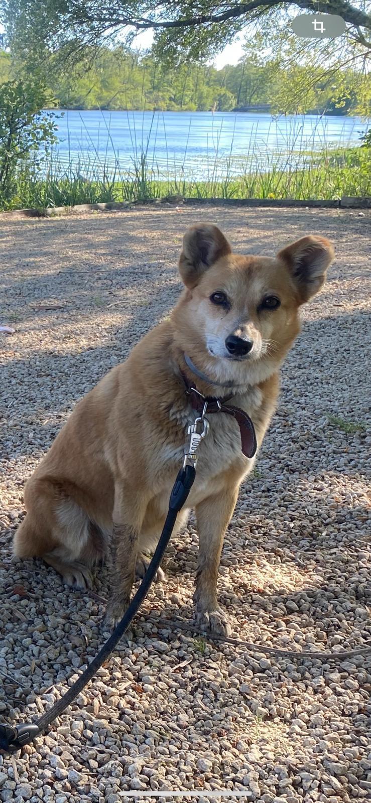 Mestiza. Con arnés azul , tamaño mediano. Cic...