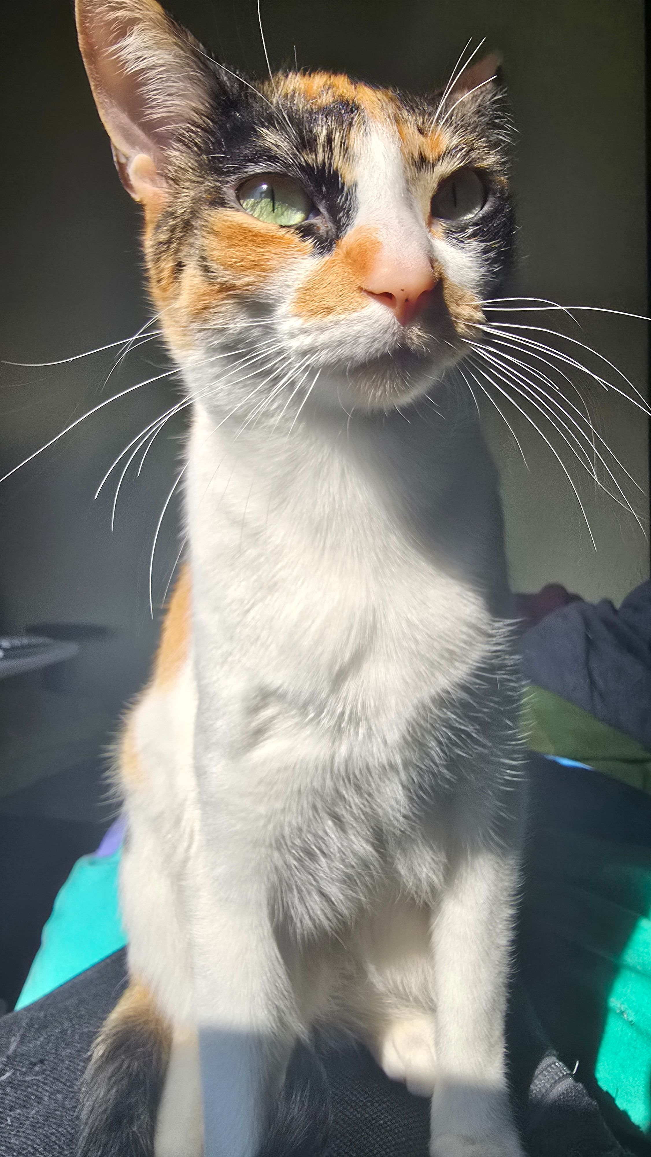 Naranja y blanca con manchas negras, es muy tímida