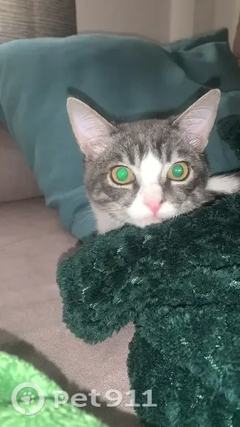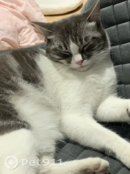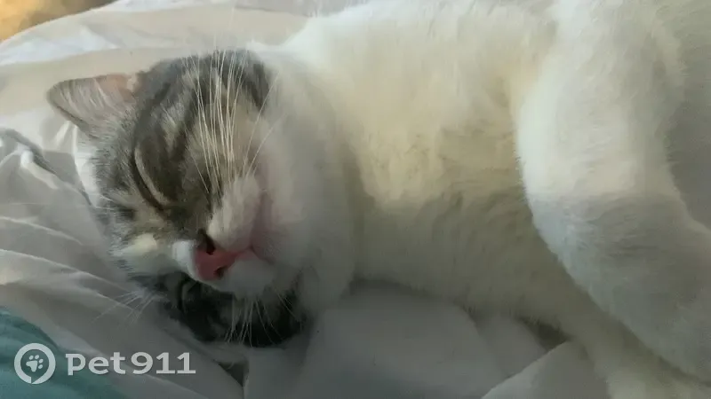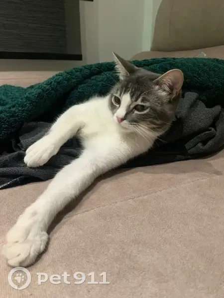 Gucci tiene una año, esta castrado y chipado. Es de coló blanco con manto en tonos grises. La careta es gris atigrada con líneas beige. Tiene la varita muy pequeña y el cuello es largo y fino. El pelo es semilargo y muy esponjoso. Es un amor de gato, aunque en la calle es huidizo.