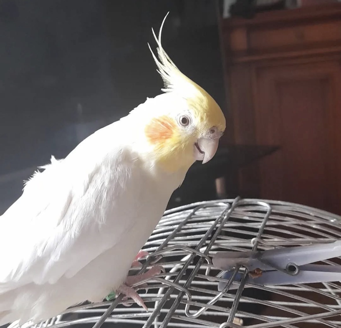 Ninfa amarilla, con mejilla naranja, es dócil...