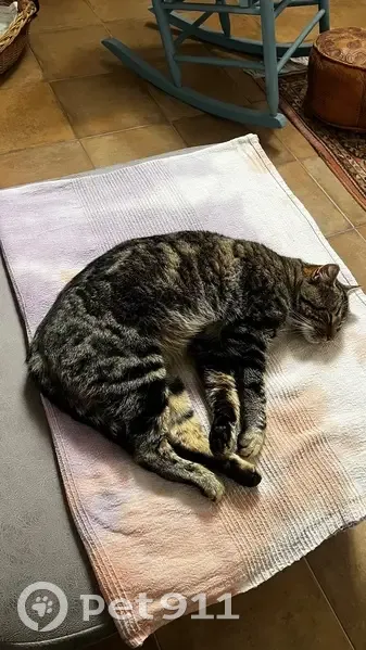 El gatito llevaba varios días dando vueltas por el pueblo pidiendo ayuda. Los encargados de las colonias del pueblo no lo reconocían y no tiene marcada la oreja. No tiene chip, es macho y no está esterilizado. Tiene un buen pelaje, no creemos que lleve mucho tiempo en la calle. Es muy bueno en casa y muy mimoso. No le gusta salir, tiene miedo. Tiene solo la barbilla y dos anillos blancos casi al final del rabo. Sus almohadillas son negras y la parte interior de sus patas también.