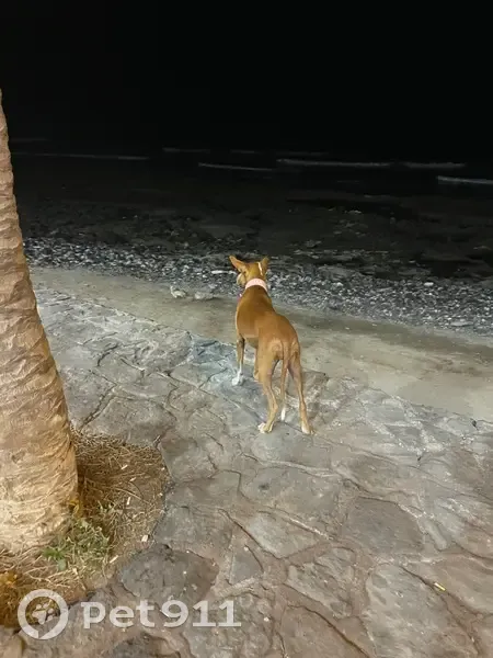 Perra perdida en el Paseo Marítimo de Las Américas (Zona Metrópolis), Arona. Observa el mar de forma continuada como intentando encontrar su dueño, intentamos acercarnos para ver su placa con números de teléfono pero huía asustada. Tiene el nombre de Killa en el collar.