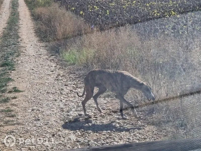 Galgo español atigrado. Sexo desconocido. Parece un ejemplar joven. Se haya merodeando en las inmediaciones de Bozoó, provincia de Burgos, pero rehuye el contacto humano y sólo se acerca al entorno urbano para buscar comida. No presenta conflictividad con otros perros, sólo distancia con los humanos. Carece de collar y cualquier otro signo de identificación que no sean sus rasgos físicos. Pudiera llevar bastantes días por la zona según testigos de los vecinos.