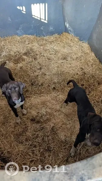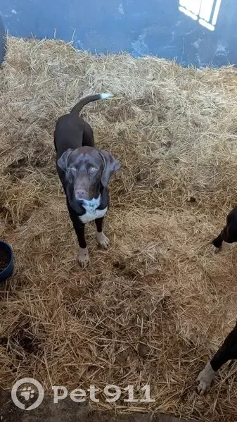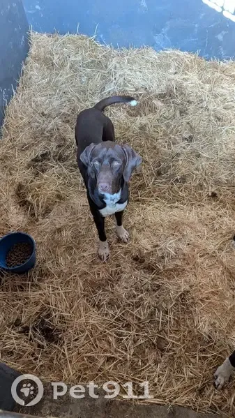 Hola por el Sector Adriano, carretera Acueducto de San Juan, hemos encontrado estos dos perros, parece son Labradores, o Braco Aleman están bien, un poco nerviosos, se ve que son perdidos, buscamos apoyo para encontrar a sus dueños, pueden ser de Dos Hermans, de Los Palacios o de haciendas o fincas aledañas al sector. Son muy amigables, están asustados y bien cuidados, estoy seguro que tienen dueño y están extraviados. Son dos!