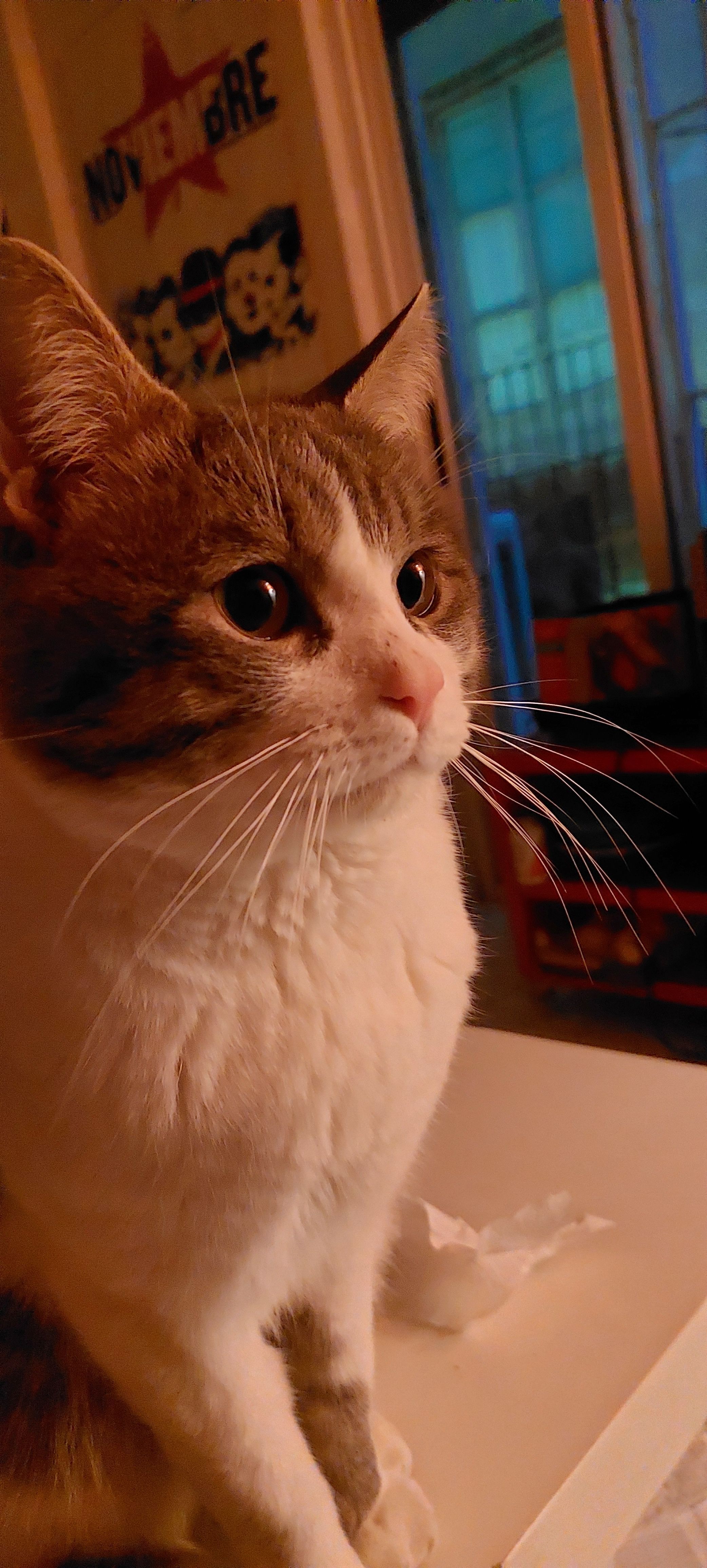 Me he encontrado este gato enla calle Moral de la Magdalena. Macho, gris y blanco y grande. Lo tengo en mi piso porque pasaban coches y se asustaba mucho, me daba miedo que lo pudieran atropellar. Es muy bueno y cariñoso. Difundir por favor. Llamar al 654 904 579 gracias