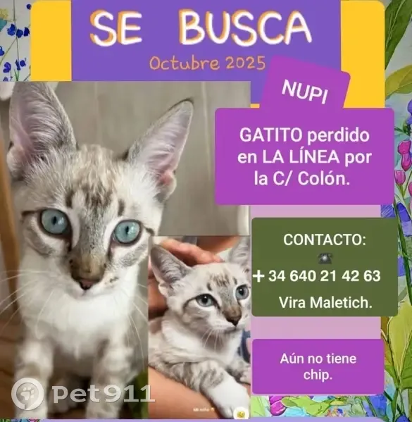 Mi gato no es muy de fiar de las personas, se pone agresivo y te puede arañar. El día que se perdió, se escapó por la ventana del cuarto de baño donde no me encerraba bien la puerta. De la ventana de cuarto de baño subió por la azotea y bajó por los cables a la calle. Fui corriendo a llamarlo y se metió en el motor del coche al ver pasar a la gente. Se asusta de la gente, de oír a los coches o motos de pasar. Se siente tan extraño en la calle…. Normal, tiene solo 3 meses, es pequeño. No lleva chip, ni tampoco me dio tiempo de ponerle las vacunas.