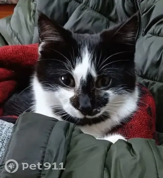 Se asustó cuando lo llevaban al veterinario. Pasó un coche tocando pita y se zafó por un lado de la puerta del transportín. Es un gatito de 6 meses, lo más característico es su manchita en forma de triángulo en la cara y sus ojitos verdes. Es super cariñoso, aunque ahora mismo estará desconfiado...