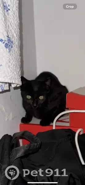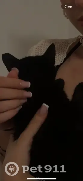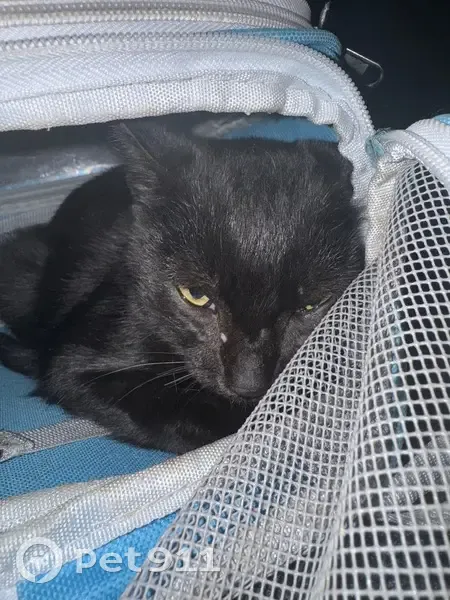No sé cómo desapareció; sospecho que saltó del balcón. Es completamente negro, está castrado, tiene cuatro meses y medio, le arrancaron una oreja de un mordisco, tiene cicatrices blancas alrededor de los ojos y, cuando tiene miedo, siempre intenta esconderse en algún lugar oscuro. Cuando lo acaricias, ronronea.