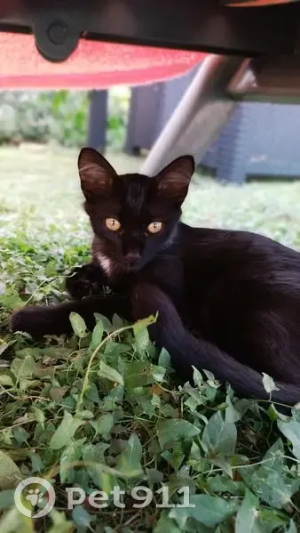 Gato junior con microchip, todo negro, pelo largo en la cola y por el cuello, manchita de pelo blanco en cuello, mechones de pelo gris largos en orejas. Muy bueno. Visto en calle Pompeu Fabra Montornés del Vallés.
