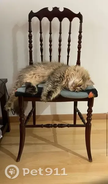 Es un gato de rasa Scottish muy peludo con pelo largo tiene diferentes tonos de color marrón y gris. Muy educado. Confía a la gente. Ha crecido con amor.
