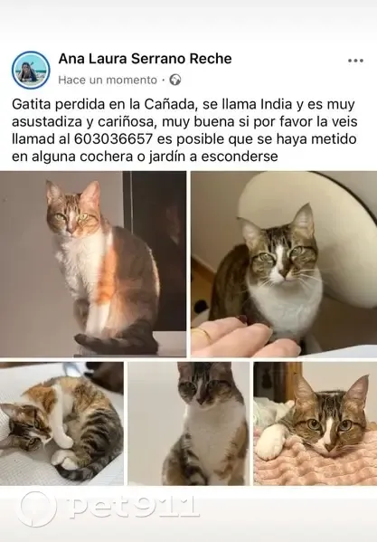 Ojos verdes con dos líneas gruesas negras, la mitad de la nariz blanca, por encima atigrada romana y pecho y barriga blanquita, es muy dulce y cariñosa pero no se deja coger es muy asustadiza, es de tamaño pequeña, responde al nombre de India o cuando se le silva la canción de pinocho fue a pescar al río Guadalquivir...
