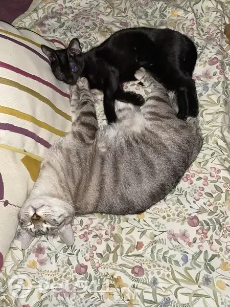 Es pequeño, completamente negro, aun no le hemos podido poner chip porque lo cogimos muy malito pero ahora está precioso y sanito, salvo la cicatriz en el iris del ojo derecho