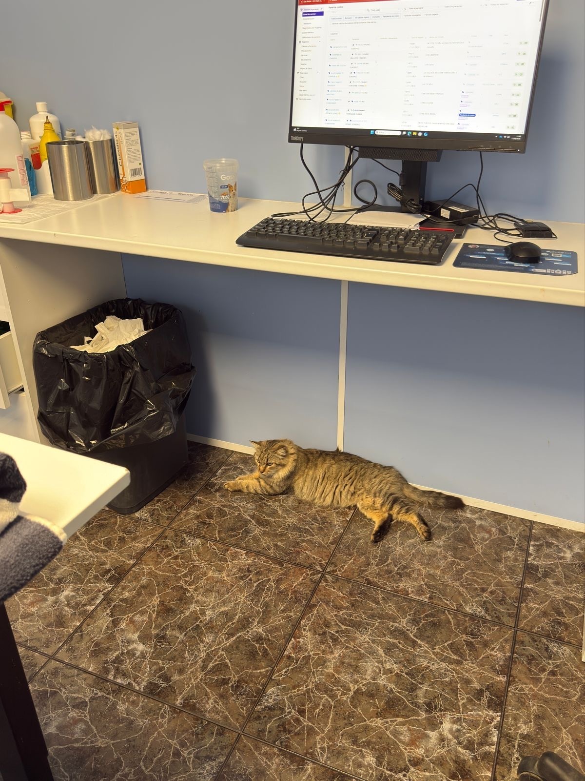 Gata callejera sin chip que se había instalado en casa hace un mes. La llevamos al veterinario y estaba con tratamiento antibiótico pendiente de hacerle una eco para esterilizar. La asustó el perro de los vecinos y desapareció.