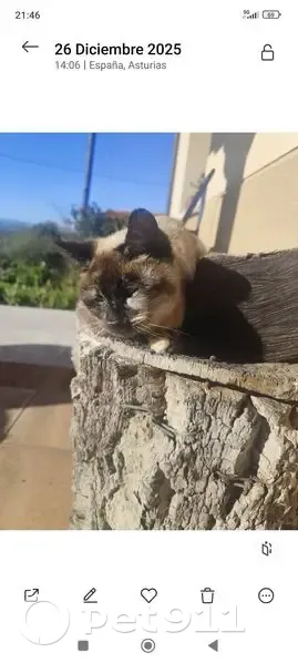 Es una gata siamesa (mestiza) pequeñita. Tiene 6 años aunque parece más joven. No tiene chip. Está esterilizada. Salió al jardín como hace siempre (entra y sale de casa, aunque duerme y pasa la mayor parte del tiempo dentro) y no ha regresado. Nunca lo ha hecho. Estamos muy preocupados porque necesita tomar su medicación. Es asustadiza, pero muy mimosa.