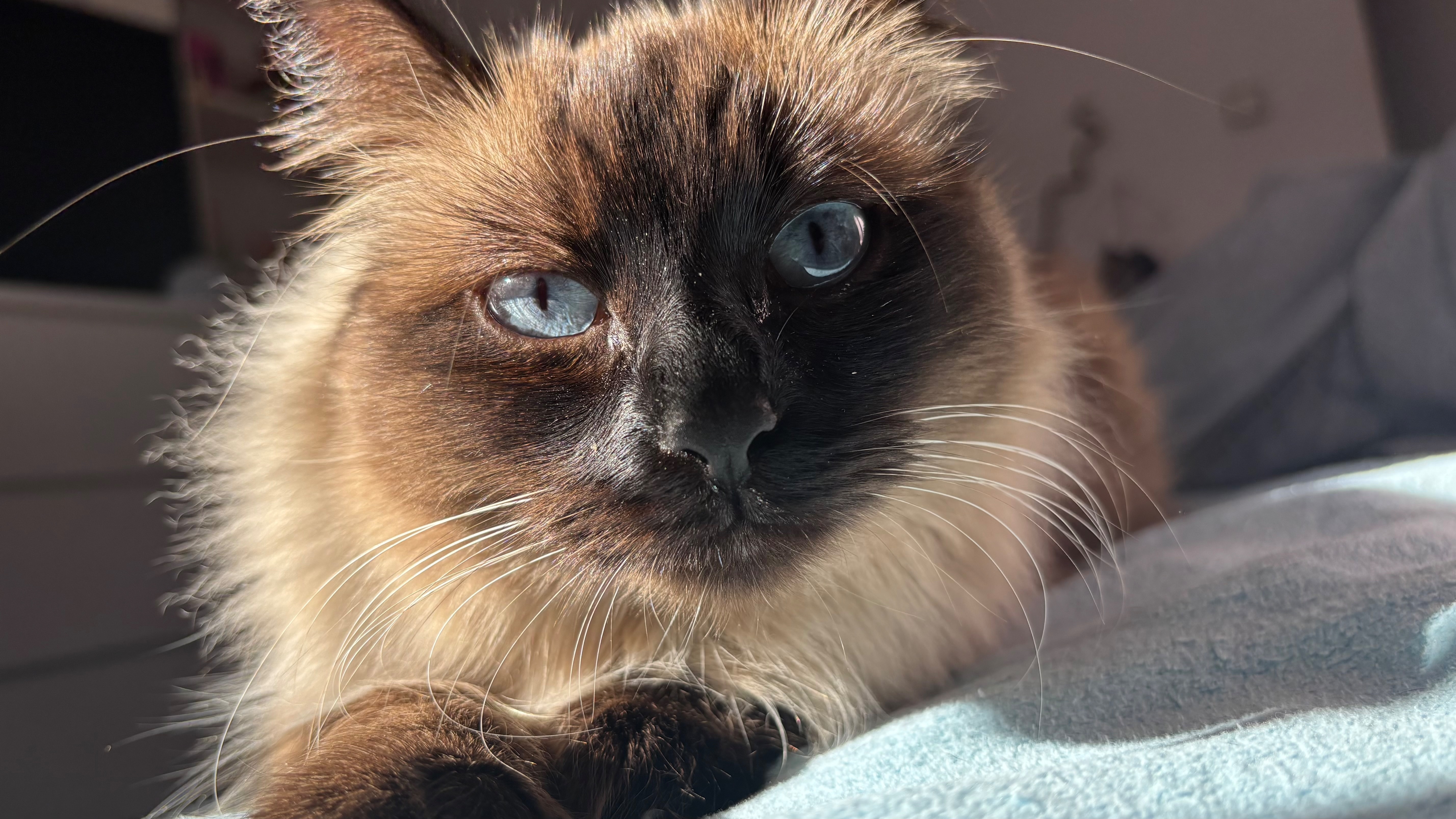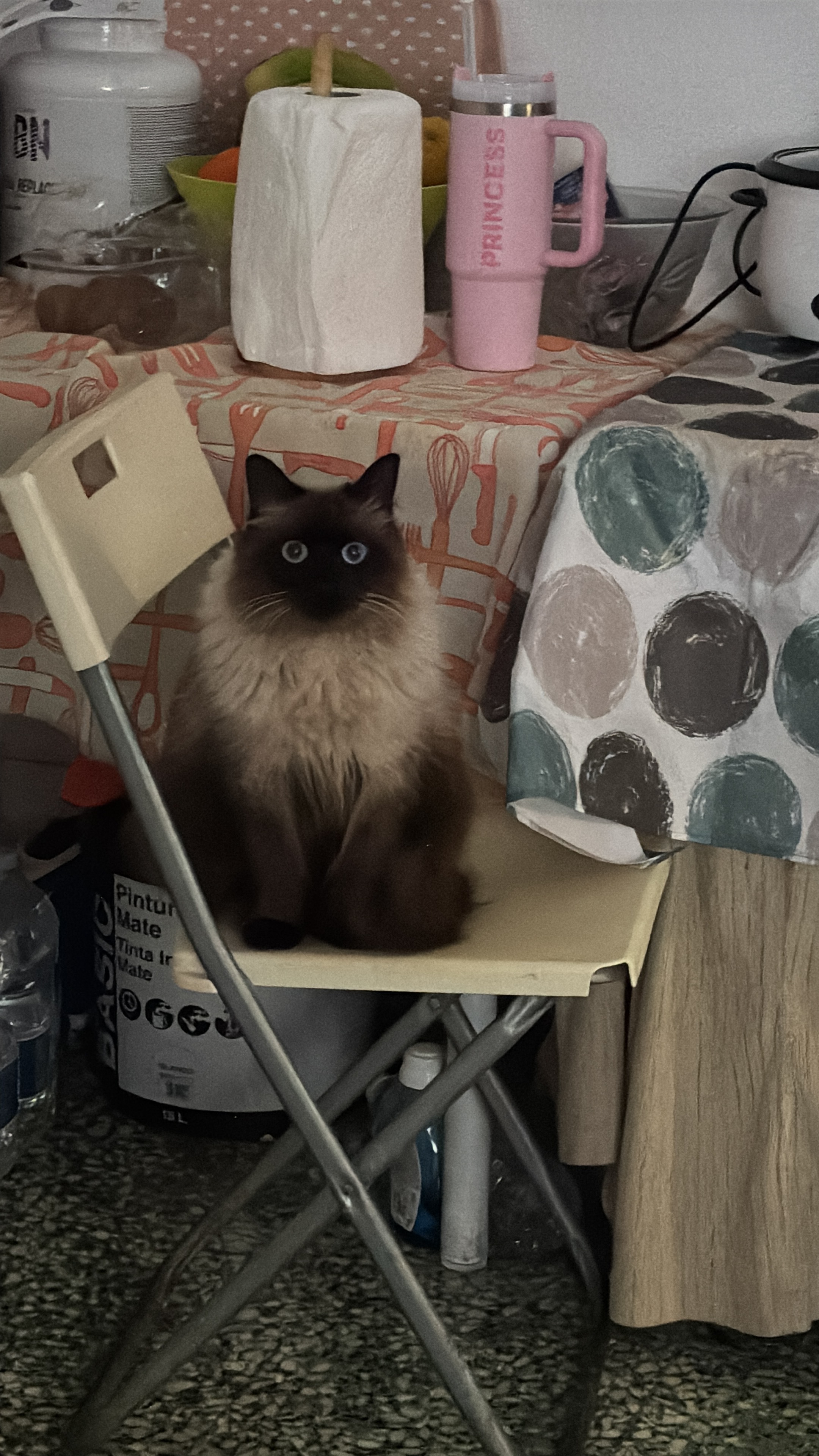 Es una gata siamesa, pelo largo, tamaño pequeño y gordita. Se perdió saltando a la terraza de los vecinos y yéndose por los tejados. Es una gata que no muerde ni araña pero es miedosa con las personas que no conoce.