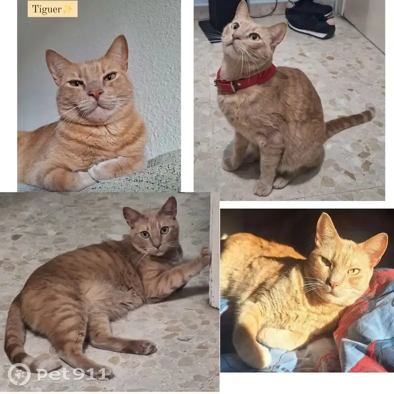 Tiene chip y collar con su nombre y número de teléfono. Es asustadizo pero muy cariñoso por favor es muy importante para nosotros. Tiene el pelo naranja claro y ojos amarillos.