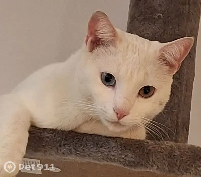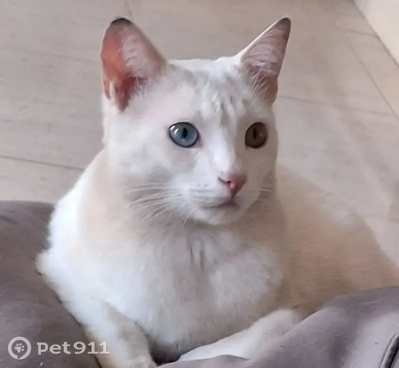 Gato blanco con ojos de colores distintos azul y naranja.Es sordo.Se ha perdido el viernes 6 de marzo en zona la pelada en el medano Tenerife.