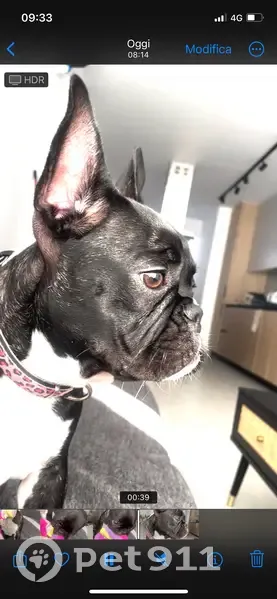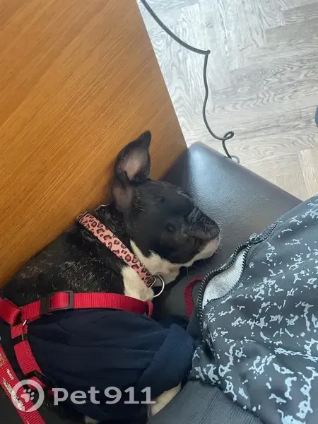 French bulldog negro y blanco con rayitas se escapó asustado y no sé si se fue por la carretera o por el bosque pero en 5 minutos ya no estaba. Lleva un collarito rosa leopardo