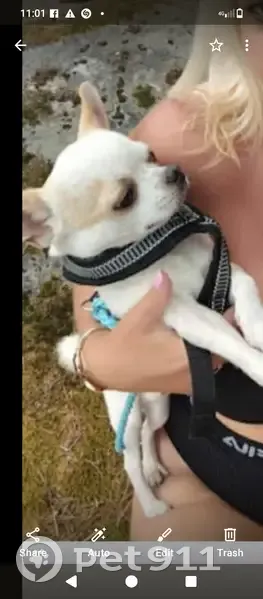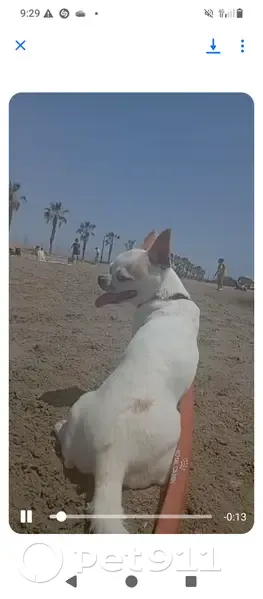 Chihuahua, blanco, macho, sin castrar, un poco dominante, muy sociable con personas y perros. Tiene una pequeña mancha en la espalda. Chip de Valencia y Murcia... Desapareció de Los Alcázares Norte cuando había turistas de vacaciones. Nadie de la zona lo ha visto. U3499246686@gmail. Com.
