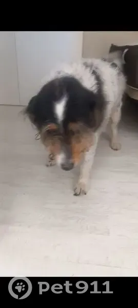 Blanco y negro con alguna mancha marrón, esta un poco sordo y ve muy poco, alguien dejó la barrera abierta y salió fuera, es raro que no vuelva, tiene 15 años y siempre ha vuelto enseguida salvo una vez que lo cogió alguien pensando que estaba perdido, no lleva collar pero tiene chip.