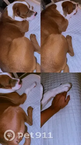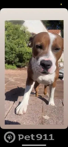 De color blanco y marrón es muy dócil buen perro no muerde a personas ni animales le Gusta el amor y se me escapó por un agujero que tapamos y tiró la madera y se fue por ahí