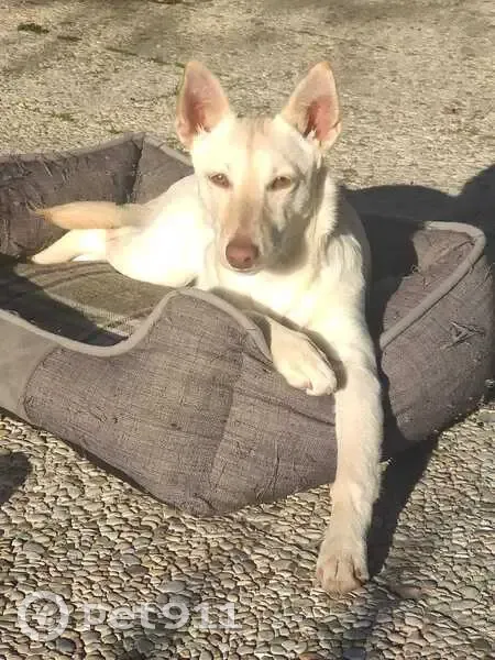 Podenca color beige-blanca. Lleva collar rojo con placa identificativa y tiene chip. Desaparecio en los aledaños de Carriches/Erustes sobre las 10 de la mañana de 12 de octubre.