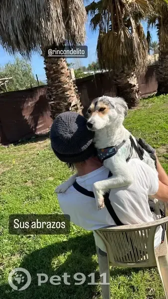 Es una perrita blanca con manchas negras,las orejitas caídas hacia delante. Apareció por la zona hace unos tres años. Pensamos que alguien pensó que estaba sola y se la llevó,pero ella come y duerme en nuestra casa,pero suele estar en la parcela de al lado con unos caballos y cerca de una granja de cerdos,está castrada y vive muy bien.