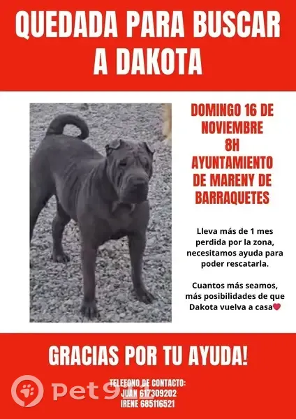 Quedada para buscar a Dakota, necesitamos cuanta más gente mejor para poder coger a Dakota y que vuelva a casa. No podemos usar jaula trampa porque cada vez que se le descubre cambia de ubicación por la zona, necesitamos ir mucha gente y poder rodearla y cogerla.