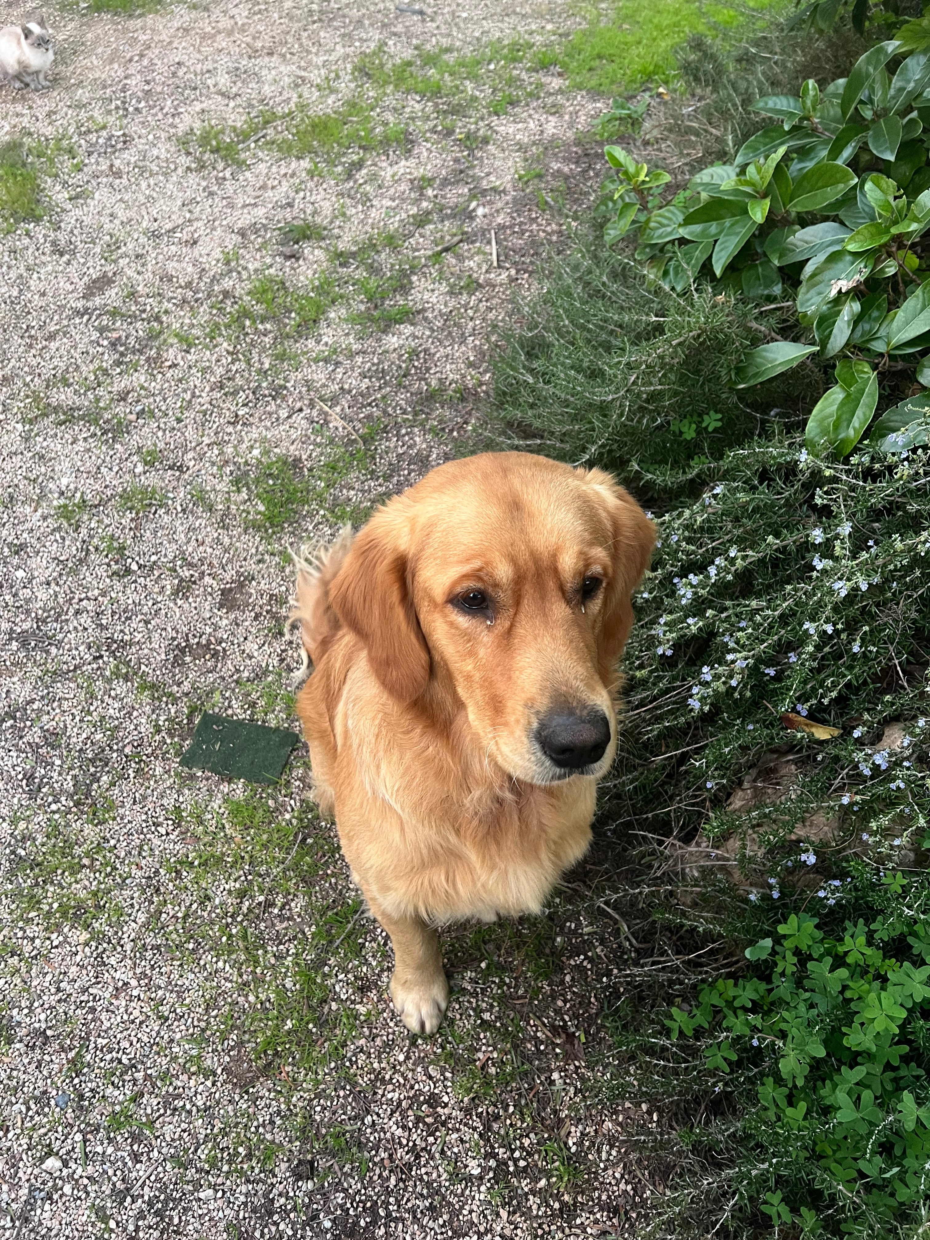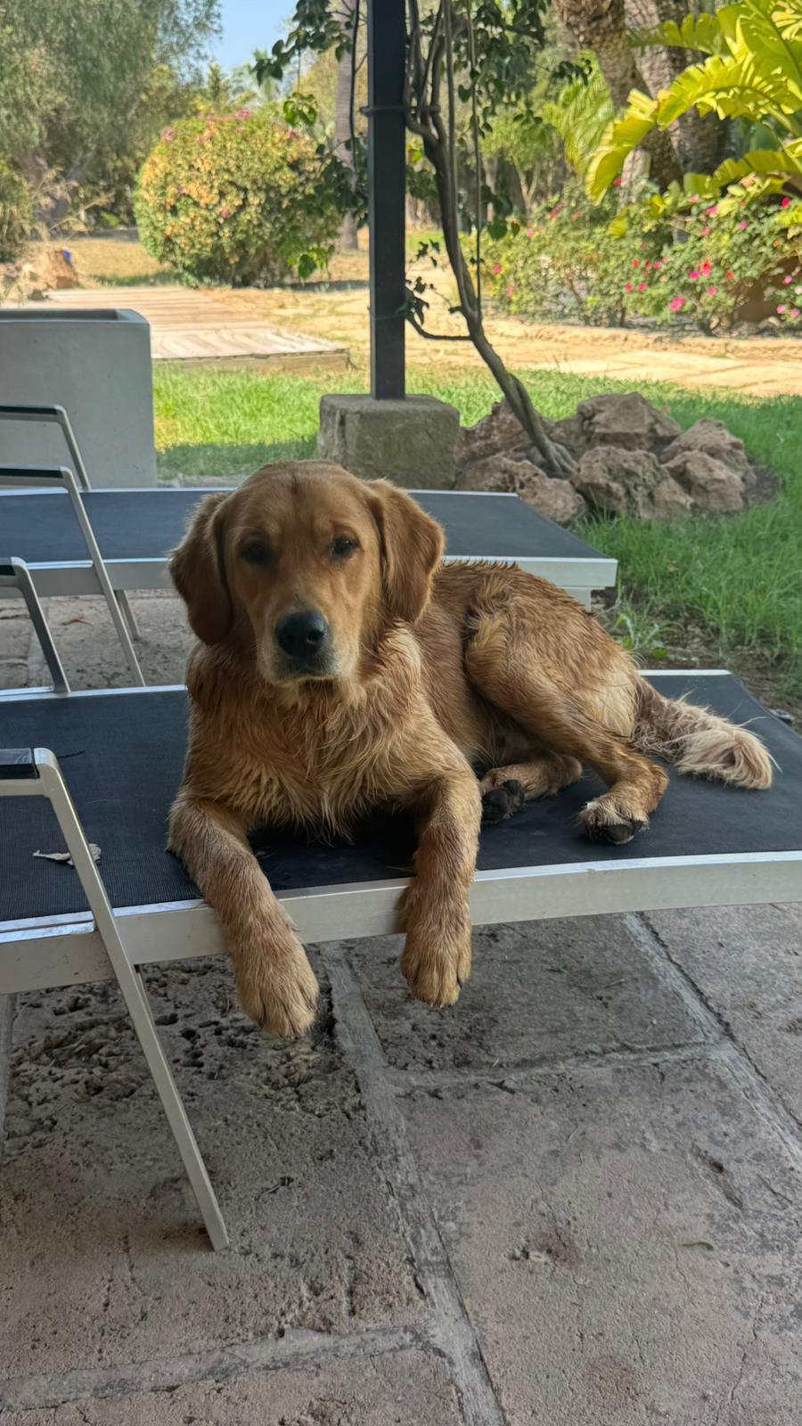 Byron es un perrito muy simpático y juguetón. Es un Golden retriever. Color canela. Le encanta jugar con sus hermanitas Lilo y Lea y hacer largos paseos paseos. Tiene un collar verde y azul en el tiene un huesito de color negro con su nombre BYRON y dos números de teléfono. Gracias por cualquier información.