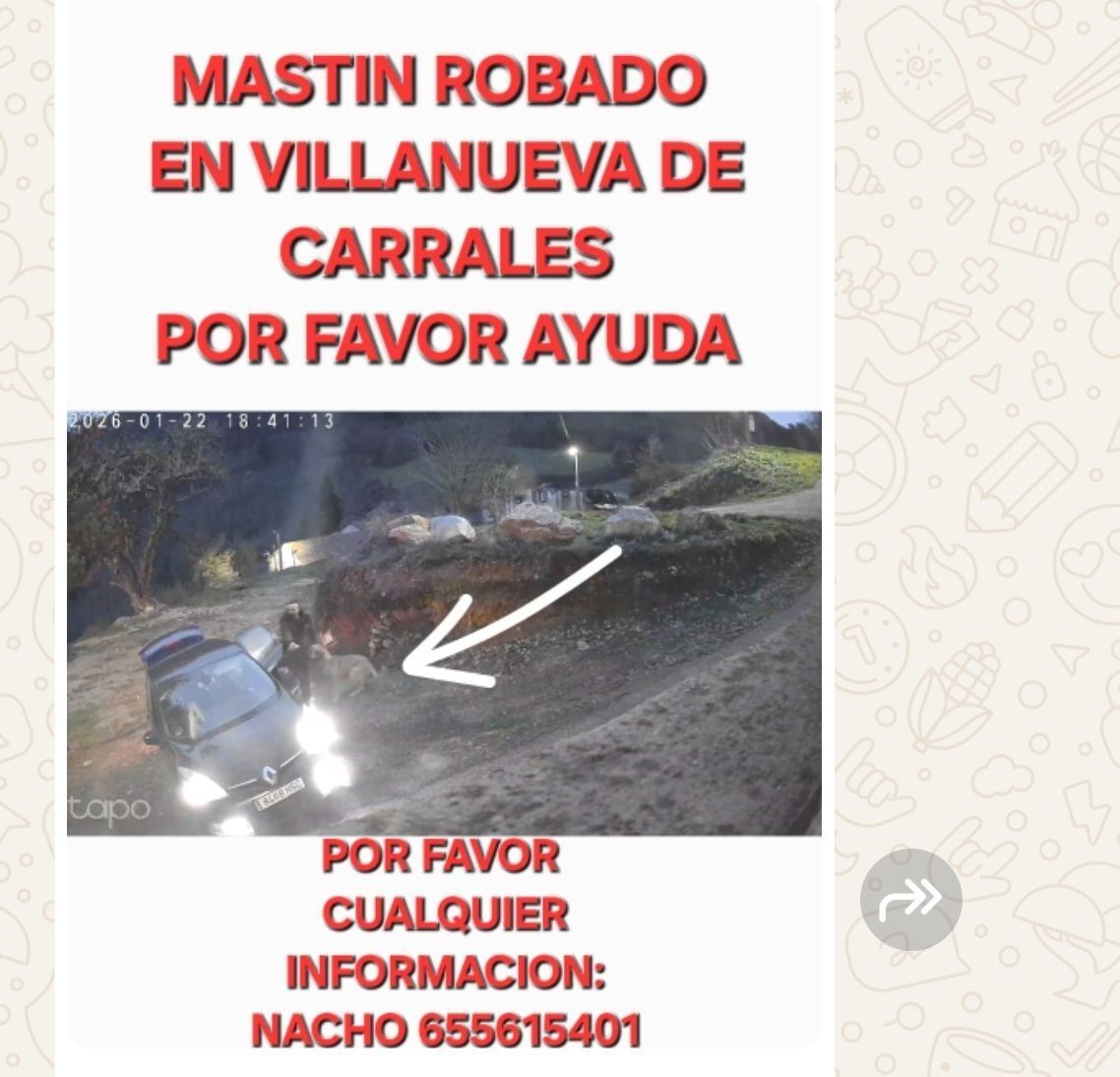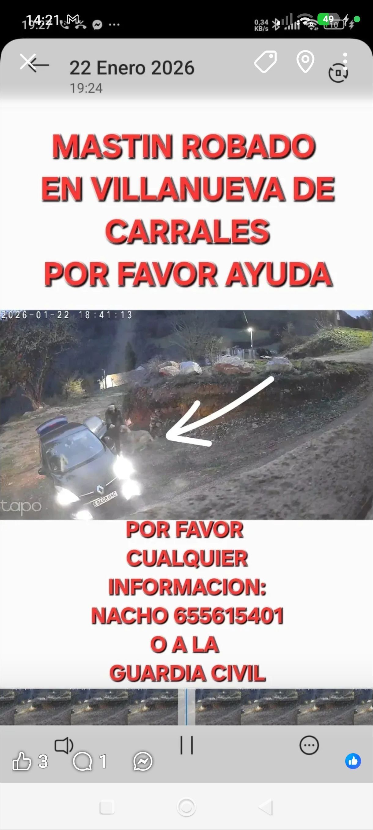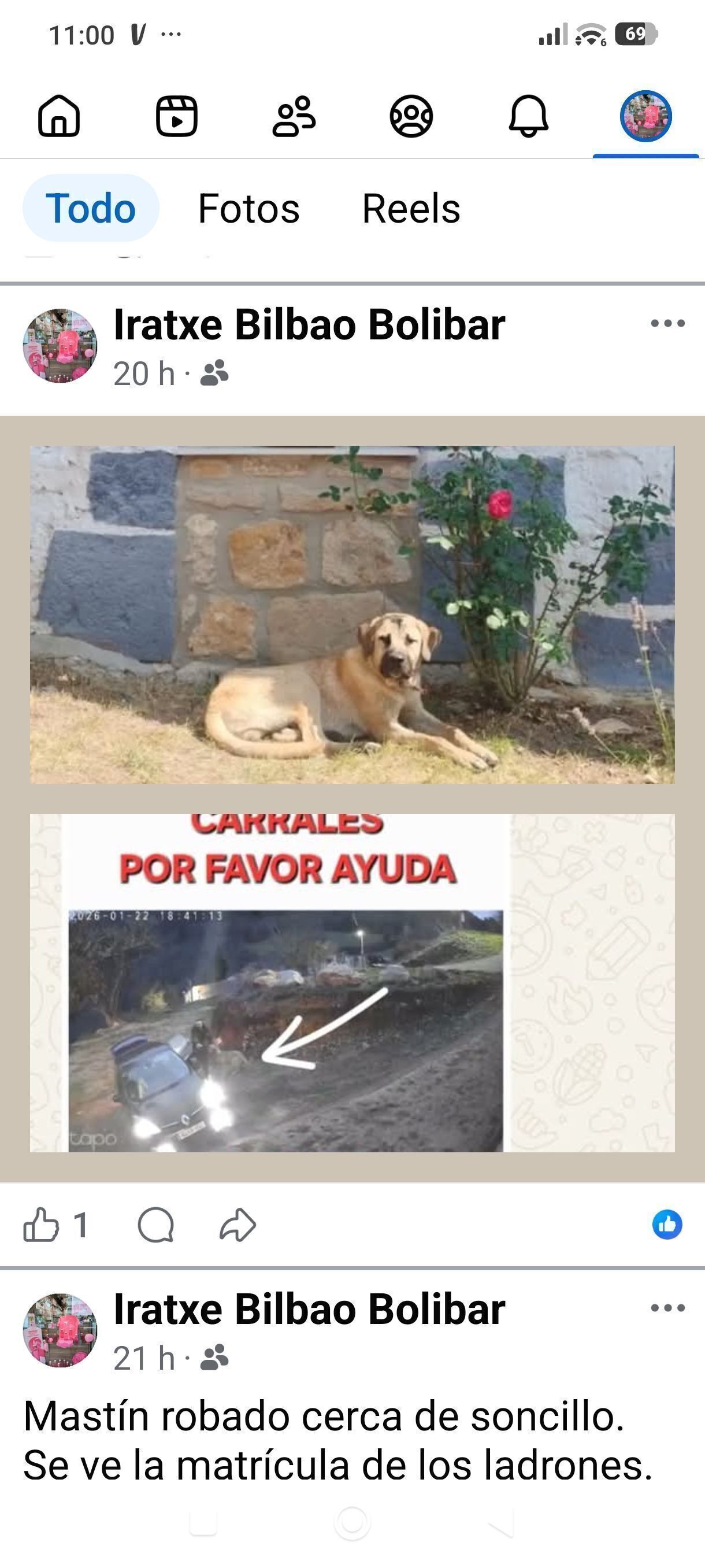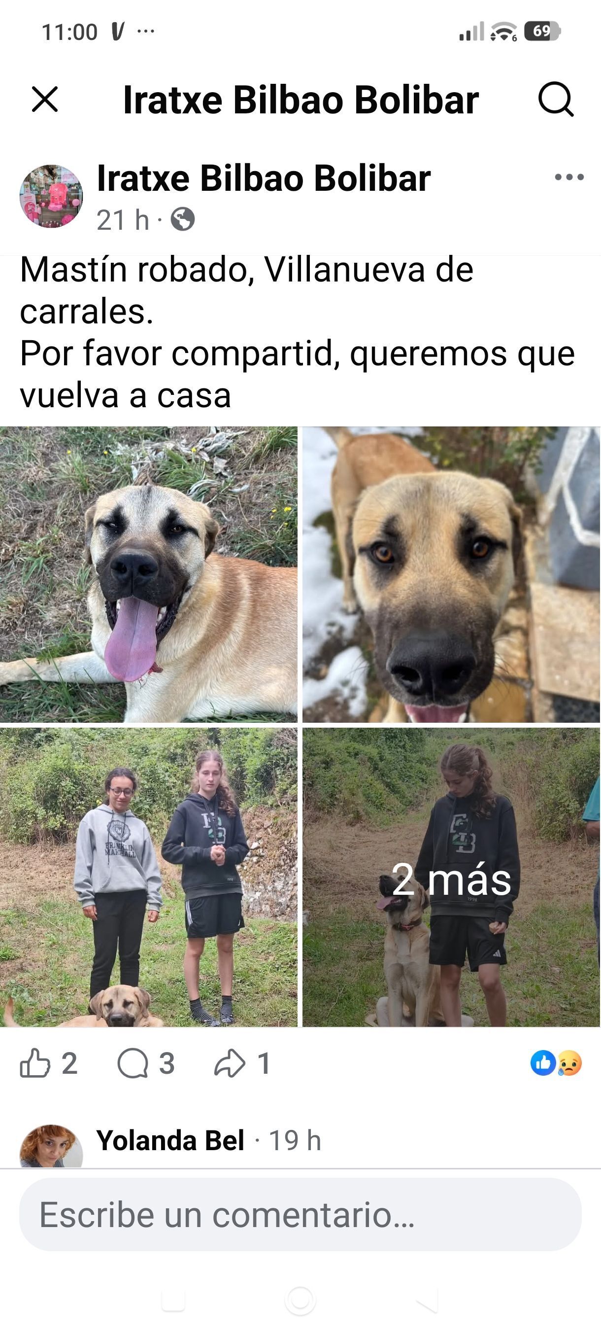Es muy sociable, le gusta jugar, no es nada agresivo. Fue robado el viernes 23, en las fotos aparece el coche usado en el robo. Está denunciado en la guardia civil.
