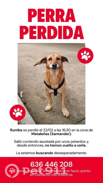 Desapareció asustada por un petardo que la dan muchísimo miedo. Es marrón, alargada (mezcla con teckel), tiene 10 años pero parece mas joven. Pesa 10kg. Es una perra adoptada muy miedosa.