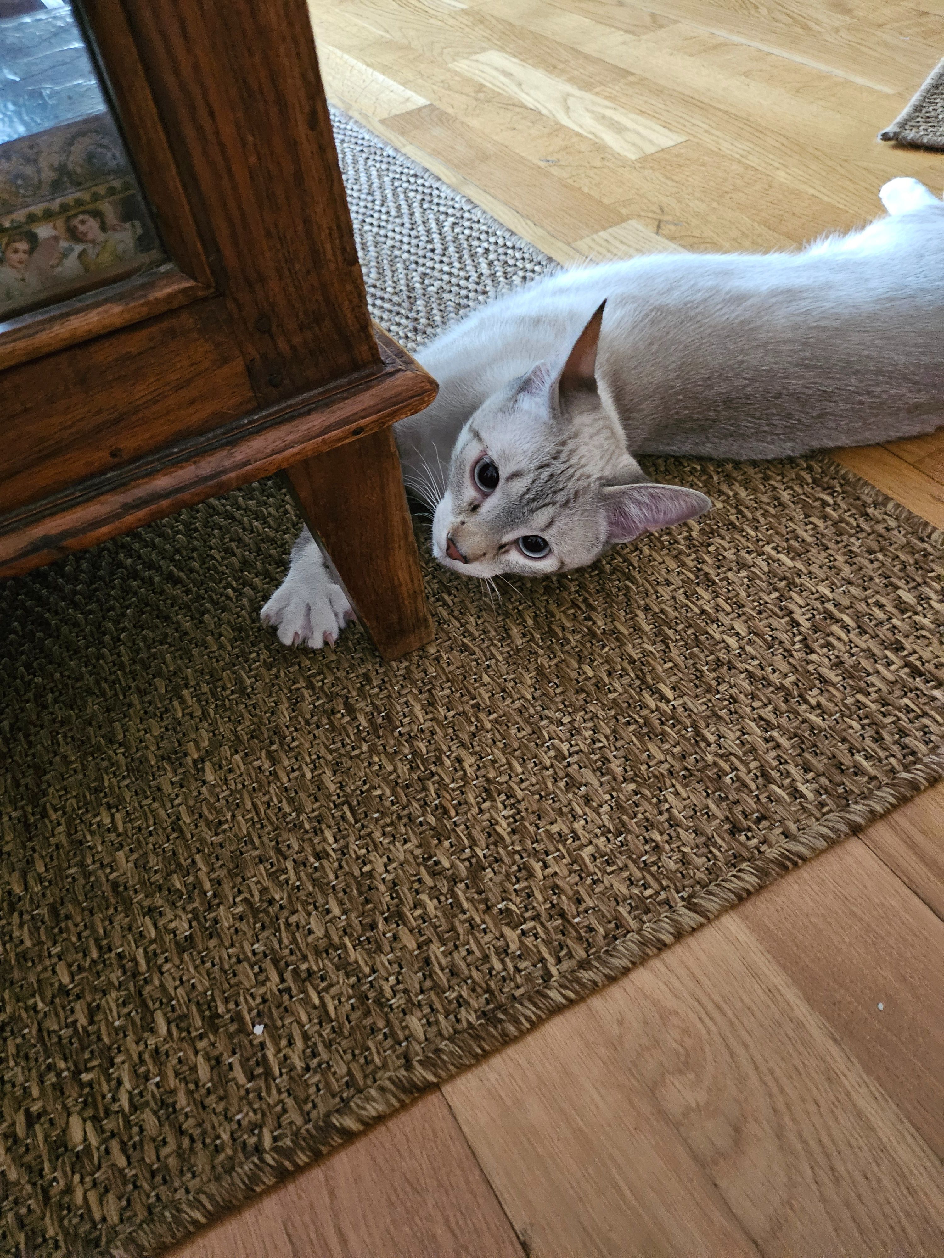 Gato Tabby-siamés (Medio atigrado medio siamés) Aproximadamente 6 meses de edad. Macho sin castrar. Cariñoso. Encontrado en zona Centro Comercial Sexta Avenida, en El Plantío.