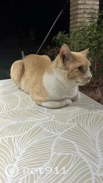 Rubio es un gato macho amarillo/anaranjado, con una calva en la parte derecha de la cara. Se escapó el día 13 de Noviembre de 2025 a escasos pasos del veterinario, abrió su transportín y salió a correr. Es muy cariñoso pero asustadizo y más en la situación que se encuentra.