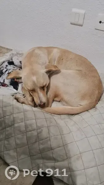Cruce labrador 25 kilos Buen pelaje Edad. Entre 1 y 2 años Ojo izdo con el lagrimal más oscuro Color; blanco y camel En celo Asustona De carácter muy docil