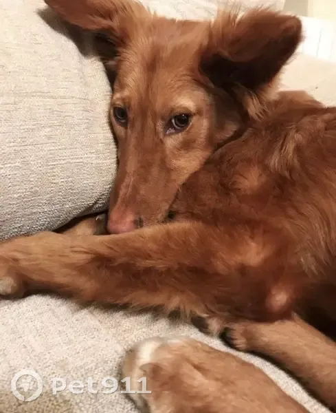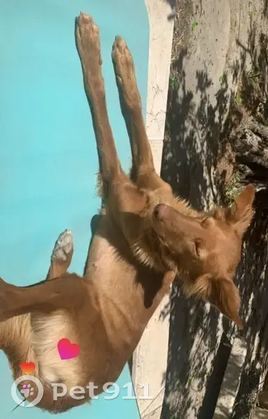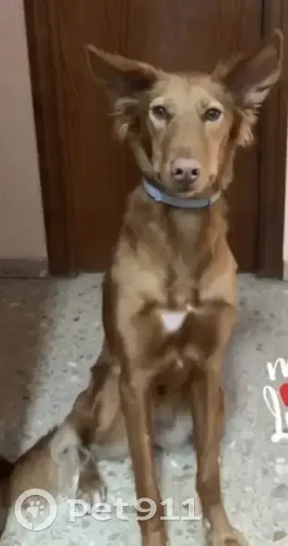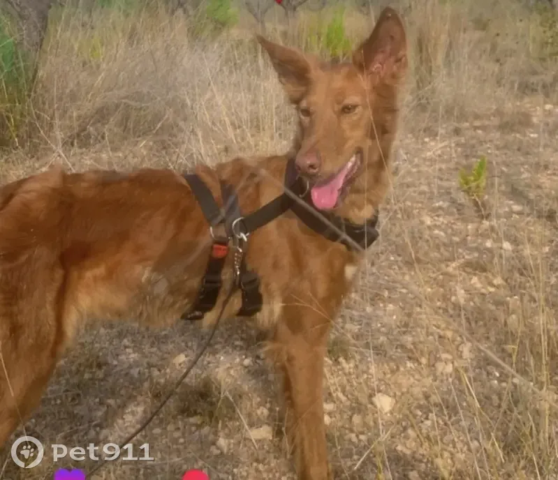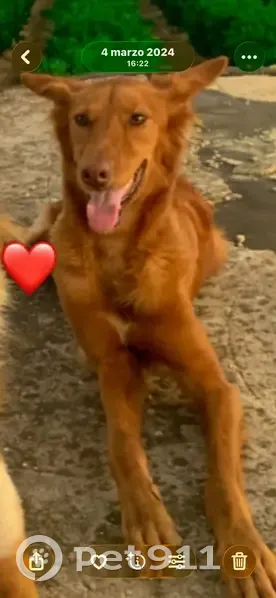 Color marrón y atrás bajo el culo pelo color nata.. Es muy dulce. Salió de casa con la otra perra porque un repartidor dejó el portal abierto, pero siempre han vuelto las dos, esta vez una volvió y la otra no, igual tenían las dos un collar con GPS, es collar lo encontré en un árbol a 2mt más o menos de altura, osea que alguien se lo quitó y cogió la perra, porque si no hubiese vuelto, estaba a 600mt de distancia de casa.