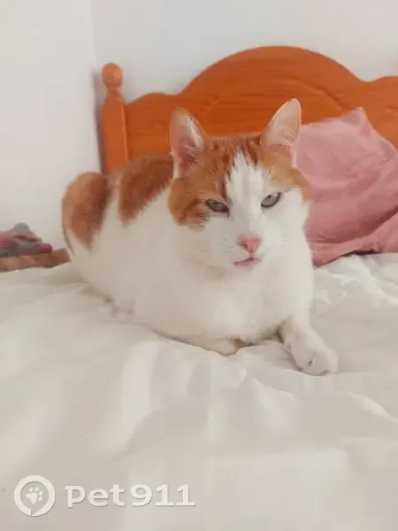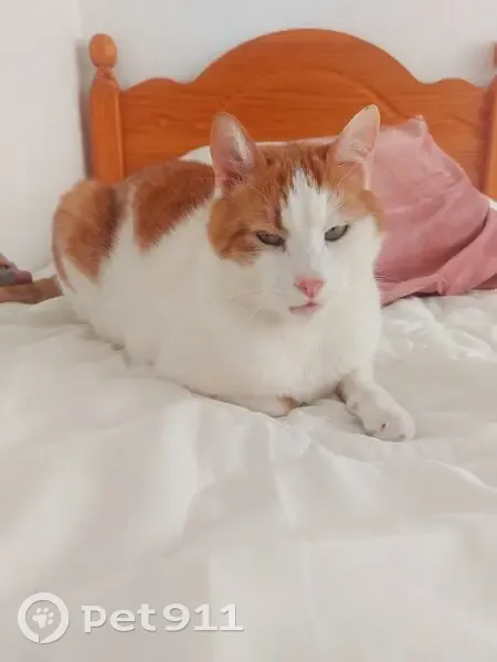 Macho, castrado de color naranja y blanco, ojos verdes, tiene microchip