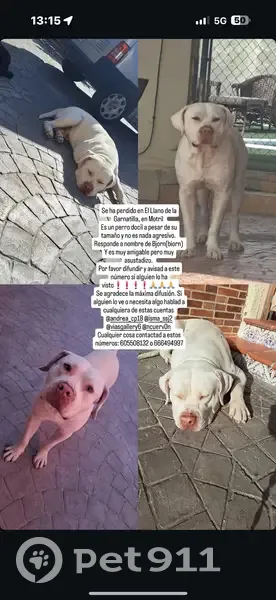 Es blanco, se dejaron la cancela de la vivienda abierta sin querer y se fue… es inofensivo pero muy asustadizo se ha perdido por el llano de la gaznatilla