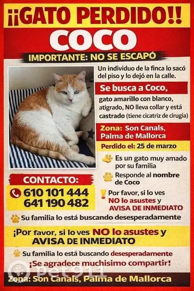 Coco es un gato amado dicen que una mujer se lo llevó por favor que lo devuelvan no sabe el dolor que está causando