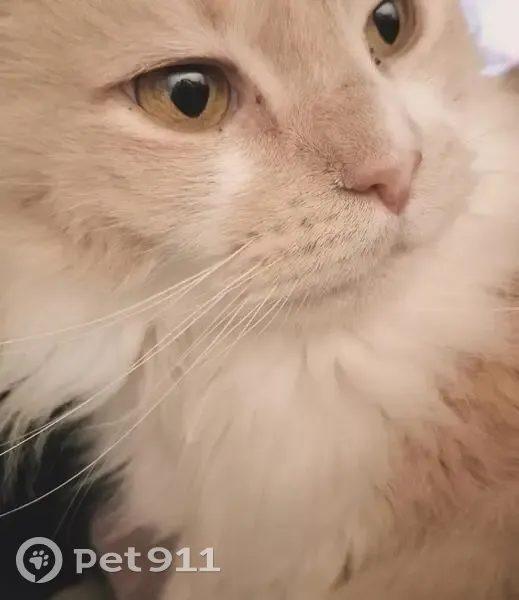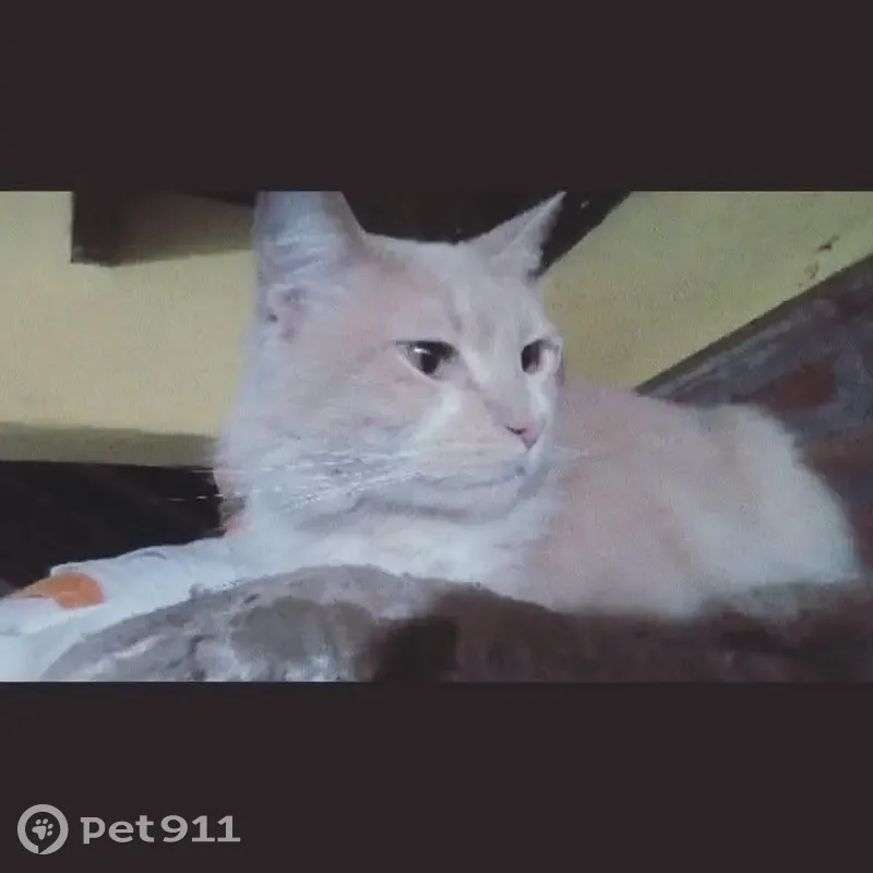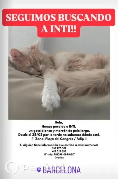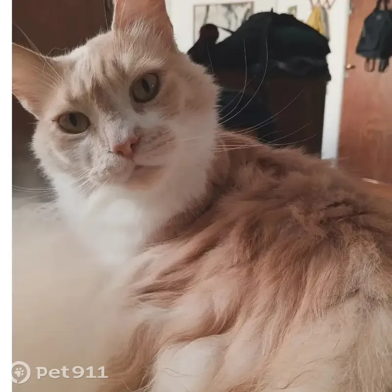 Es una gato, blancuzco con marrón, sus ojos son verdes/amarillento, pelo largo. Una mancha blanca en su nariz, las patitas blancas. Es arisco, siempre vivio en departamentos, se escapo en un descuido y le abrieron la puerta de abajo del edificio. Esta castrado , tiene 10 años.