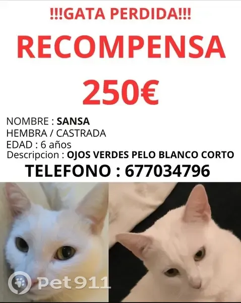Gatos perdidos, , foto: Gata Blanca Perdida: Ojos Verdes en Málaga