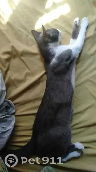 Cuando se nos ha perdido, justamente tenía una herida en la pata izquierda que no se le terminó de curar y no la podía apoyar, así que suponemos que debe seguir caminando así. Pelaje bicolor: Gris oscuro en la parte superior (lomo, costados, cola y parte de la cabeza). Blanco en la parte inferior (pecho, barriga, patas delanteras y traseras, y parte de la cara).