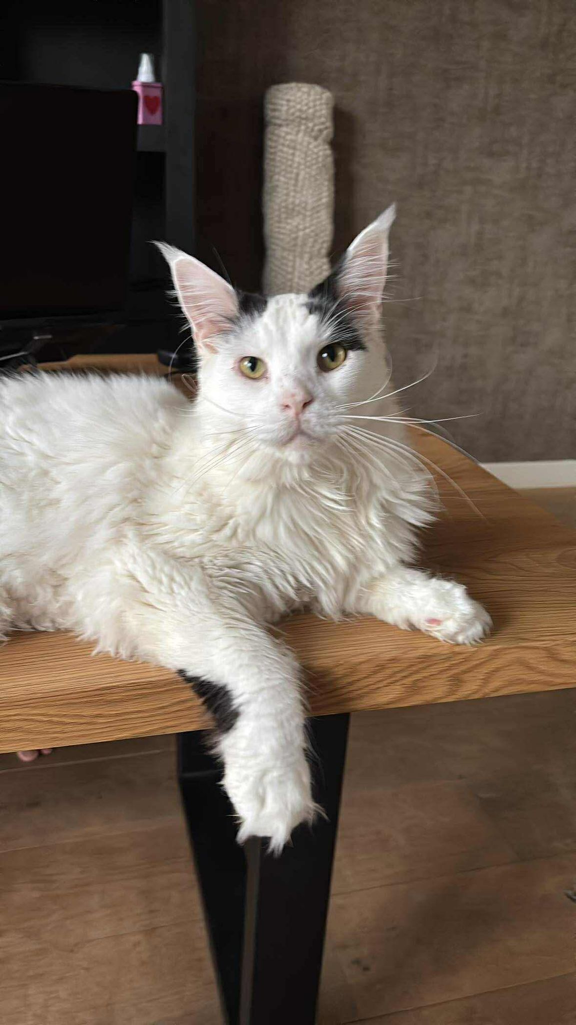 Dimas es un gato de la raza maine coon, blanco con partes negras, muy docil y amable. El domingo (30 de noviembre) por la noche salió como de costumbre, pero no regresó por la mañana como normal...