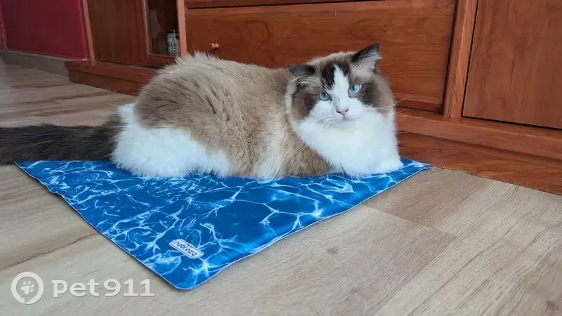 Color blanco con manchas marrón/negro, gato grande y peludo, ojos azules, se asusta fácil.